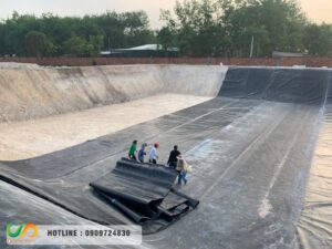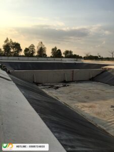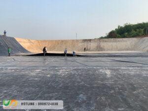 Lót bãi rác, hồ xử lý nước thải công nghiệp.